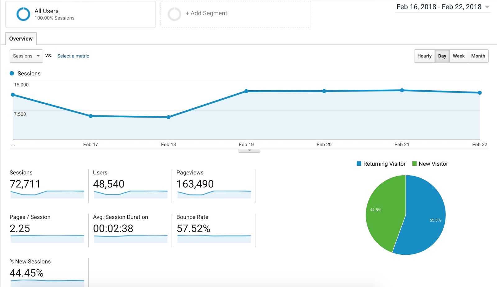 - Users — the total number of users that visited your website during the selected date range.