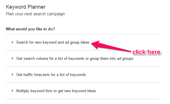Click the “search for new keywords and ad group ideas” — as you can see in the following screenshot.