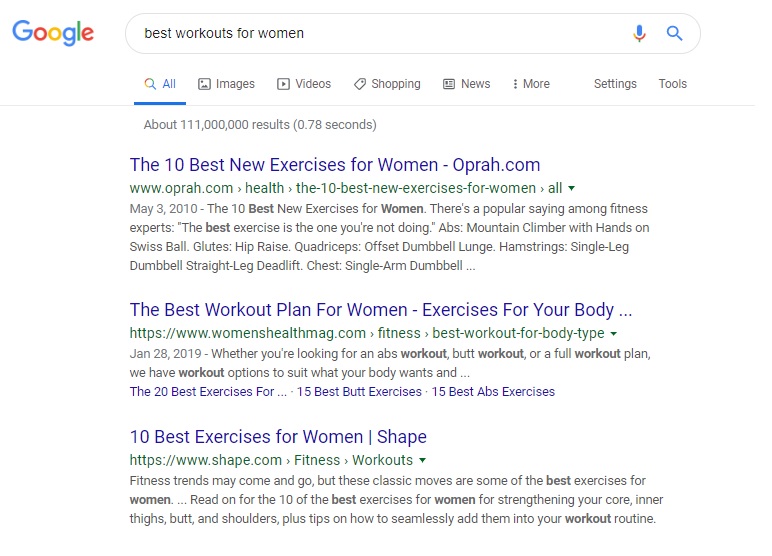 - Consider including a long tail keyword. If you’re writing about a specific topic like “best workout tips for women,” your search volume may be fairly low. A simple way to boost it is to include a long-tail keyword in the title tag to drive organic site visits. There are plenty of sites online that can help you find the long-tail variations of your primary keyword.