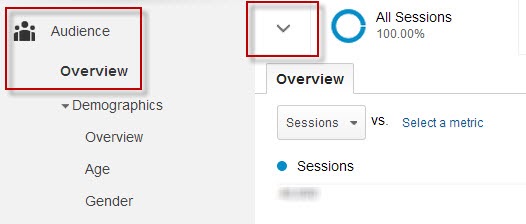 In the Audience reports section, click Overview, and click the little arrow left to the All Sessions icon.
