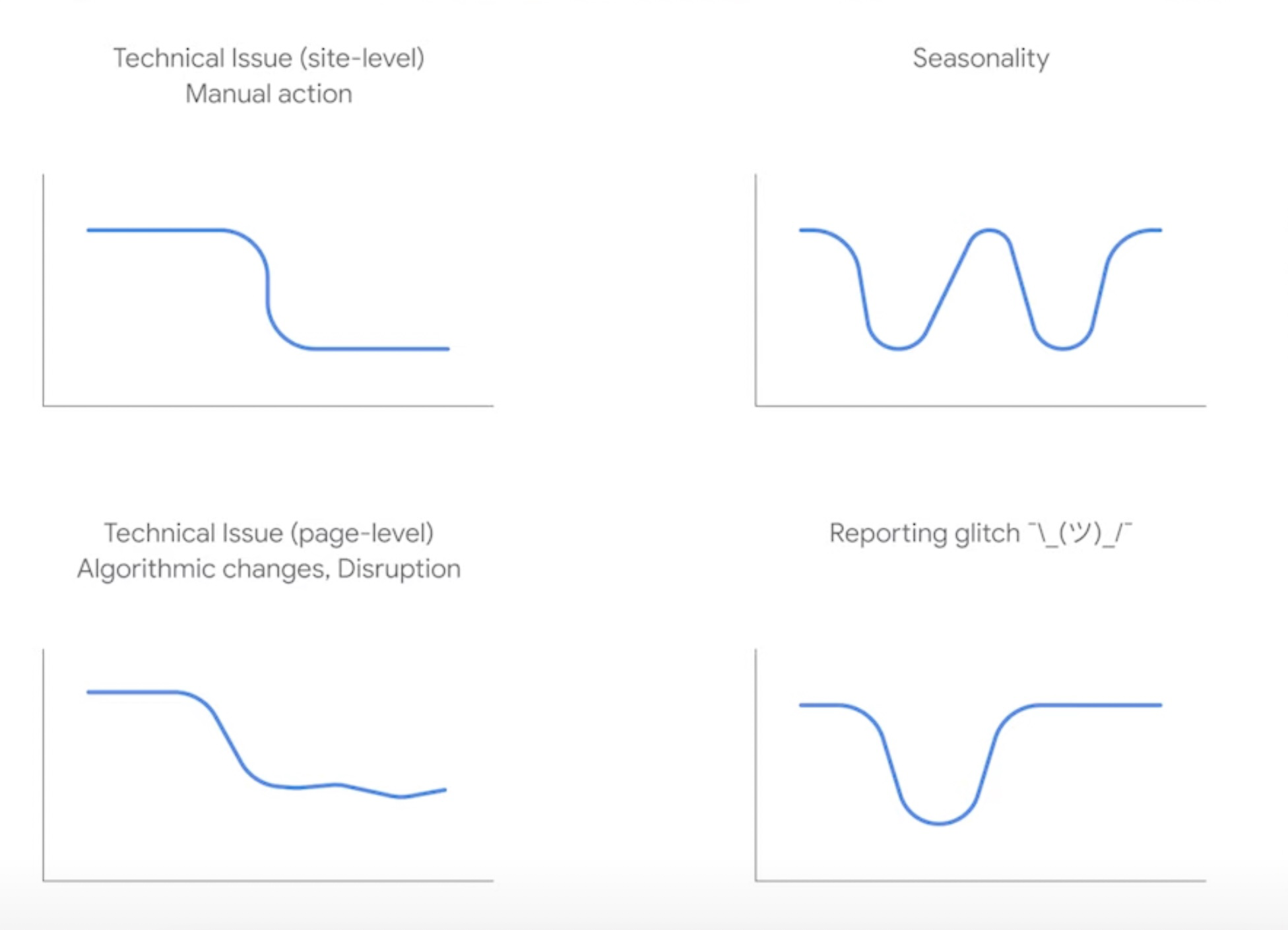 The following image by Google shows 4 possible reasons why a website may lose traffic.