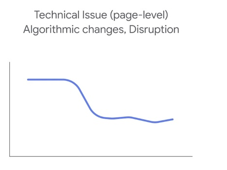In case your website is hit with page-level technical issues, the graph in the Google Search Console Performance reports might look similar to this: